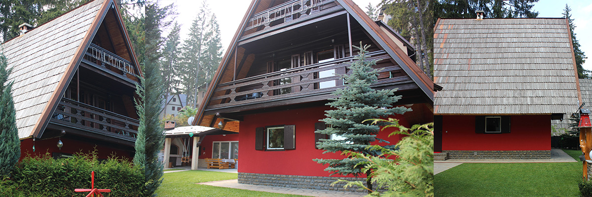 Vikendica DALMACIJA je predviđena za max 8+2 odrastlih osoba (po potrebi dvije dodatne osobe mogu koristiti kutnu garnituru na razvlačenje koji se nalazi u dnevnom boravku - ukupno 10 osoba). Objekat se sastoji od tri spavaće sobe, dnevnog boravka sa kuhinjom i dva kupatila. Dvije sobe su sa bračnim krevetima a treća je sa četiri pojedinačna. Kuhinja je opremljena svim potrebnim posuđem za predviđeni broj osoba. Ispred vikendice nalazi se kamin za roštiljanje sa svim potrebnim priborom. Vikendica se nalazi 50 metara od početnog ski lifta Babanovca. Ostali sadržaji kao što su prodavnica, restorani nalaze se par minuta pješice. Ispred vikendice nalazi se parking za više vozila.. U vikendici ima besplatan Wi-Fi internet i preko 100 televizijski programa. Goste će dočekati obezbjeđena posteljina kao i toaletni pribor.